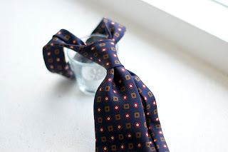 Handsydda slipsar i 100% ancient madder-silke från Drake´s of London; en av världens absolut främsta slipstillverkare. Tillverkade i London med "untipped edge" vilket är ett ofodrad avslut som sys med små stygn för hand. Denna konstruktion ger ett ledigt och vackert fall och passar utmärkt till okonstruerade kavajer och kostymer.